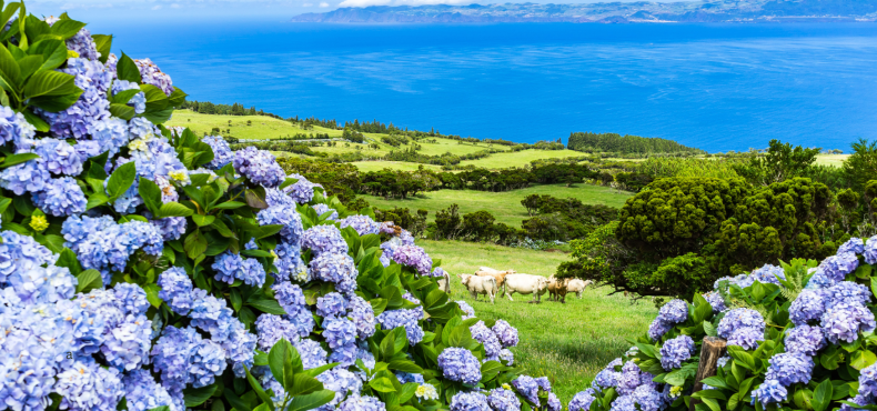Keliaujant salų serpantinais, akį nuolat džiugina neįtikėtina žaluma ir kilometrus besitęsiantys gyvatvorėmis virtę hortenzijų krūmai. Vasaros mėnesiais, kai šios gėlės pražysta mėlynais, baltais ir violetiniais žiedais, salos atrodo lyg nutapytos impresionistų teptuku.