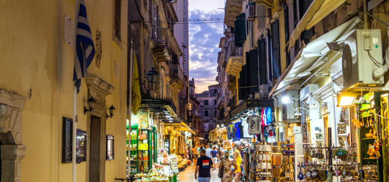 Siaurutės senamiesčio gatvelės, vadinamos kantounia, primena Venecijos labirintus. Virš miesto stūkso dvi tvirtovės – Senasis ir Naujasis fortai, iš kurių atsiveria nuostabi panorama į jūrą. UNESCO saugomas senamiestis kupinas jaukių kavinių, vietinių amatininkų parduotuvėlių ir dvelkia paslaptinga romantika, ypač vakare, kai užsidega gatvių žibintai.